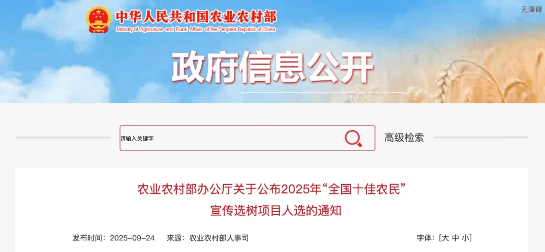 农业农村部办公厅关于公布2025年“全国十佳农民”
