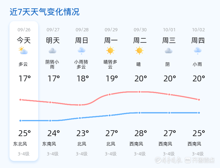 未来三天,烟台市天气趋势为小雨转多云,随后天气逐渐转晴。气温将有所波动,最高气温25℃,最低气温17℃。降雨期间,市民需注意增添衣物,特别是老人和儿童,以防感冒。同时,降雨可能引发局部地区地质灾害,需加强防范。