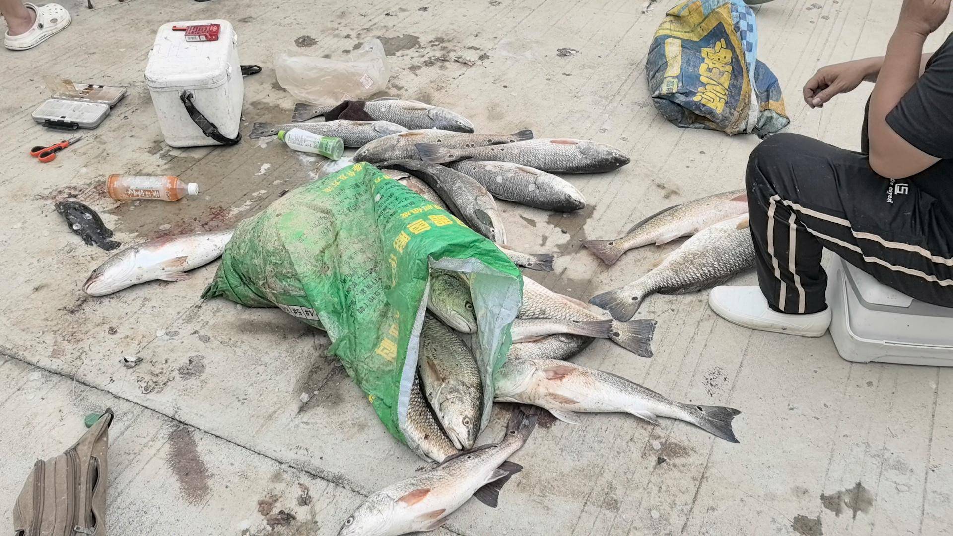 另一边,对于“钓鱼佬”而言,台风后却迎来“大丰收”。“好多鱼!好多鱼!过来闸坡就有鱼钓,很多大鱼。”当地居民陈伟告诉红星新闻,“马尾岛、炮台人山人海,岸这边、对岸站满了人,每个角落都是人,上千钓鱼佬齐聚,甩竿、收线,渔获堆成小山,很‘壮观’。”