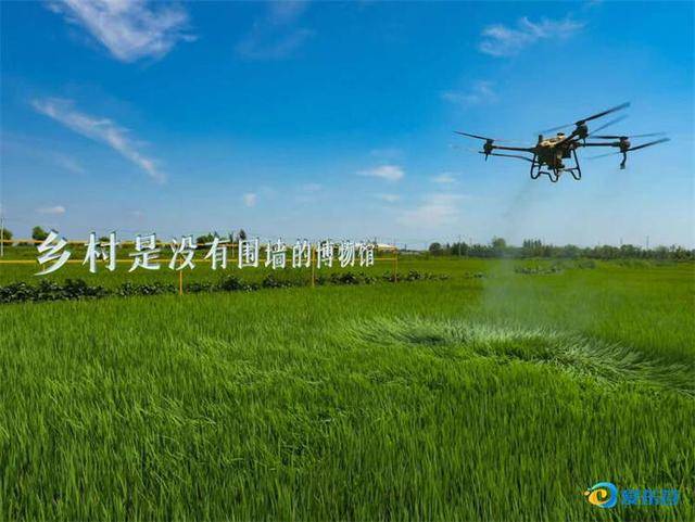 近日,东营区文汇街道王营村稻田内无人机正在喷施叶面肥。通讯员 缪宏伟 报道