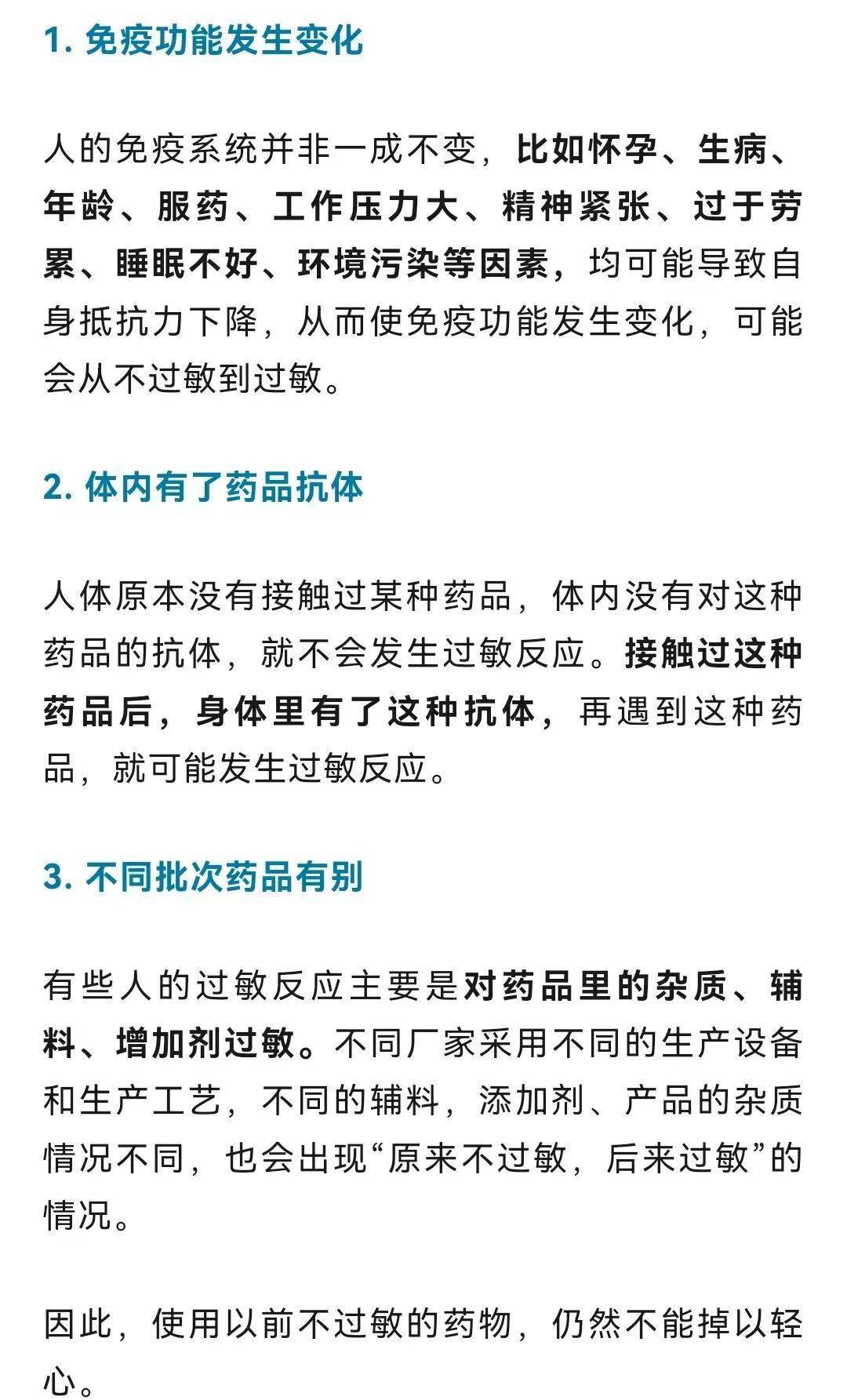 临床上,经常有患者提出这样的疑问:“医生,我以前对这个药不过敏,怎么现在就过敏了呢?”可能有以下几种原因: