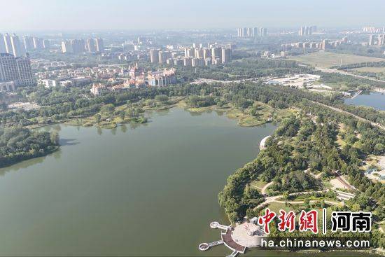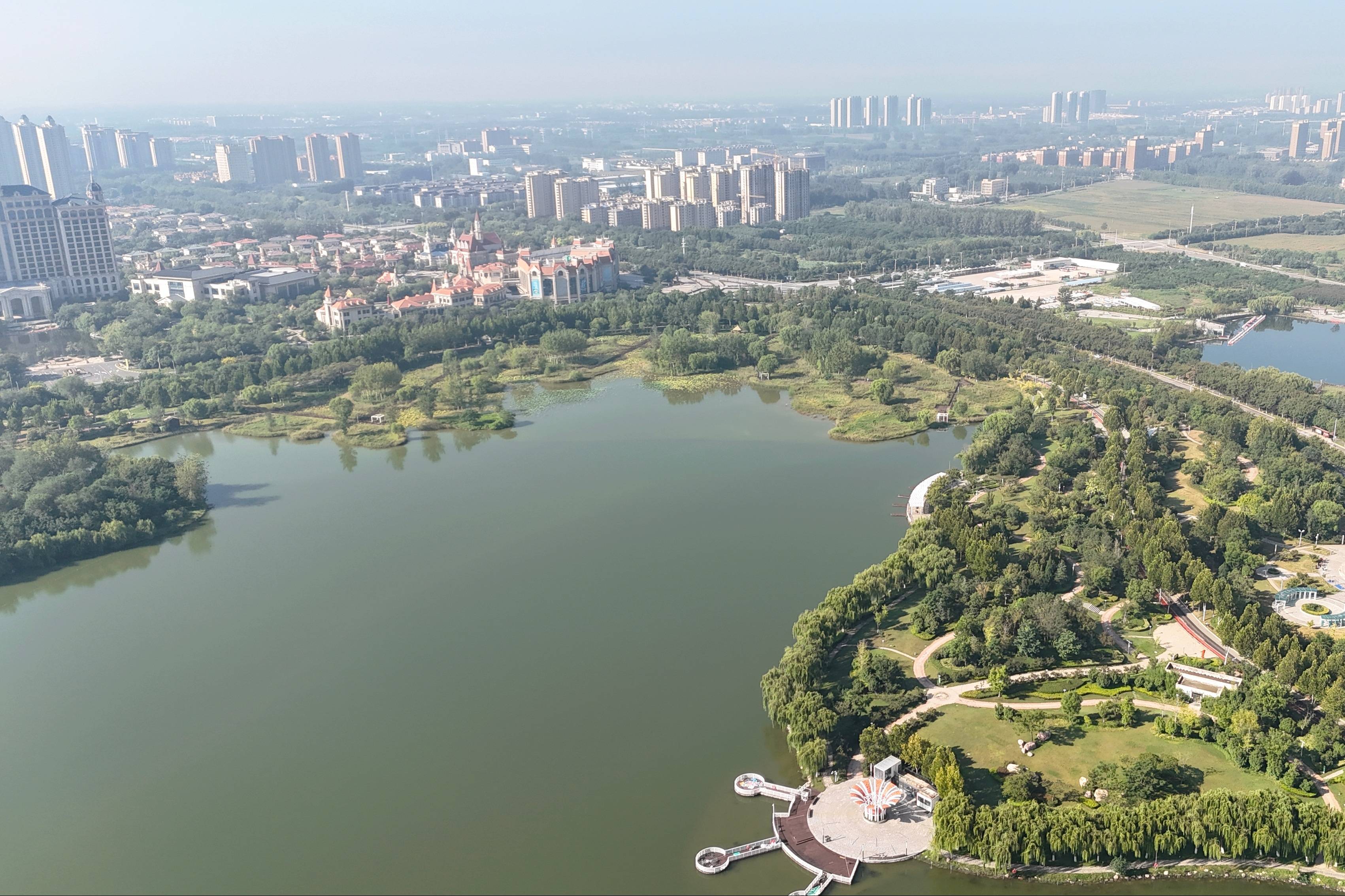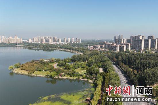 9月25日,河南新乡原阳县凤湖公园秋日风景如画。凤湖公园是豫北最大的引黄调蓄工程,兼具生态涵养、调蓄防洪、美化城市、休闲游憩多重功能。