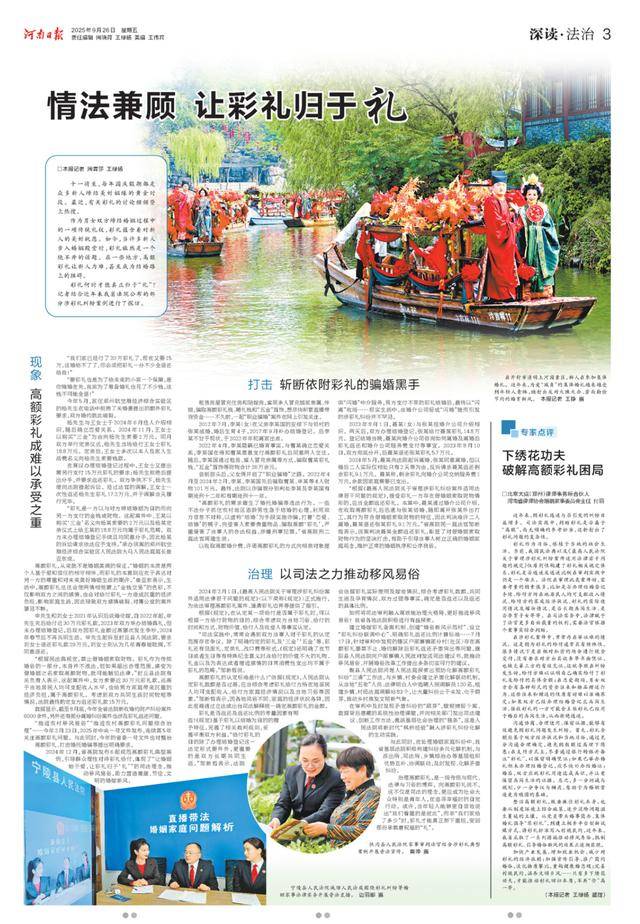 “推进农村移风易俗”“推进农村高额彩礼问题综合治理”……今年2月23日,2025年中央一号文件发布,连续第5年关注高额彩礼问题。与此同时,今年的省委一号文件也对整治高额彩礼、打击婚托婚骗等提出明确要求。