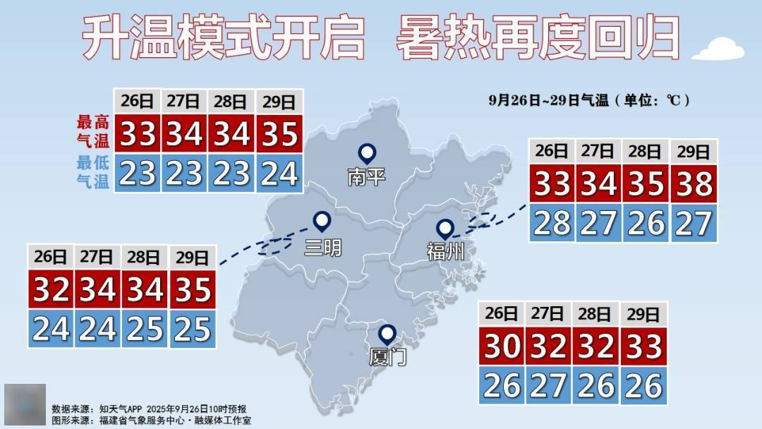 据泉州气象消息,在副热带高压强势控制下,未来几天依旧“复制粘贴”26日的天气模式,晴热当主角!午后山区部分乡镇最高气温将达到35℃以上,高温时段尽量避免户外活动,多喝水、少在烈日下暴晒。