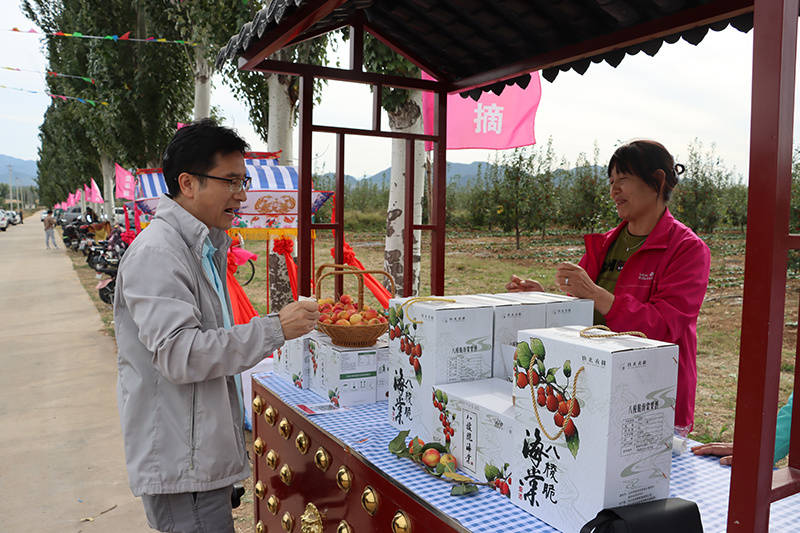 农产品展销区,色泽红润的八棱脆海棠果吸引了游客。同时展出的海棠果汁、果酒等深加工产品,彰显了该产业从初级农产品向产业链后端延伸的显著成效。