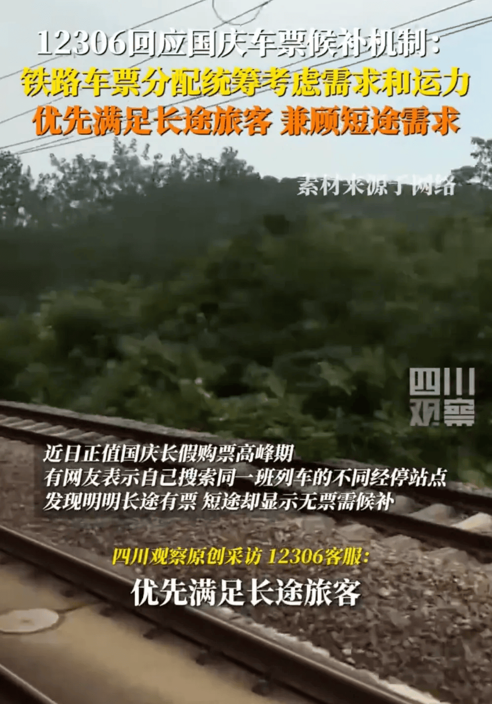 同一段行程,长途显示有票,短途却需要候补?近日正值国庆长假购票高峰期,有网友表示自己搜索同一班列车的不同经停站点,发现明明长途有票,短途却显示无票需候补。