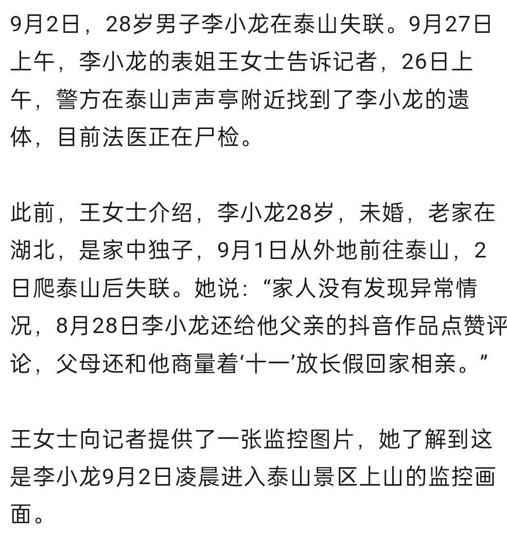 据媒体此前报道,李小龙的同学赵先生(化姓)表示,他和李小龙的手机安装了有位置共享功能的某地图软件,李小龙最后的定位信息位于泰山。他手机没电了,电话打不通。此后,赵先生辗转通知了李小龙的亲属。家属得知情况后向当地警方报警,并向当地救援力量求助。