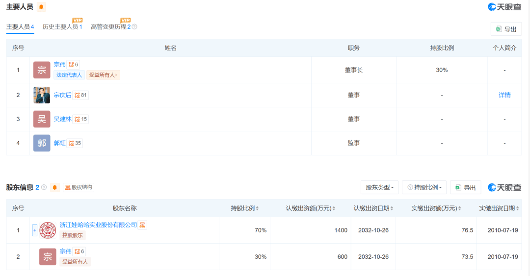 由浙江娃哈哈实业公司(娃哈哈实业)持股70%的子公司上海娃哈哈饮用水有限公司成立于2002年,是“娃哈哈”桶装水在上海地区的独家经营实体,全面负责上海地区“娃哈哈”桶装水的生产、销售和委托外部加工,上海娃哈哈饮用水有限公司的董事长、法定代表人宗伟也是股东之一,持股30%。