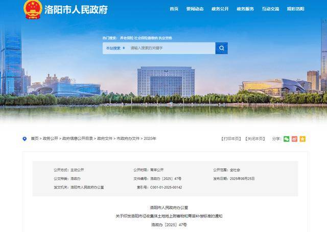洛阳市征收集体土地地上附着物和青苗补偿标准