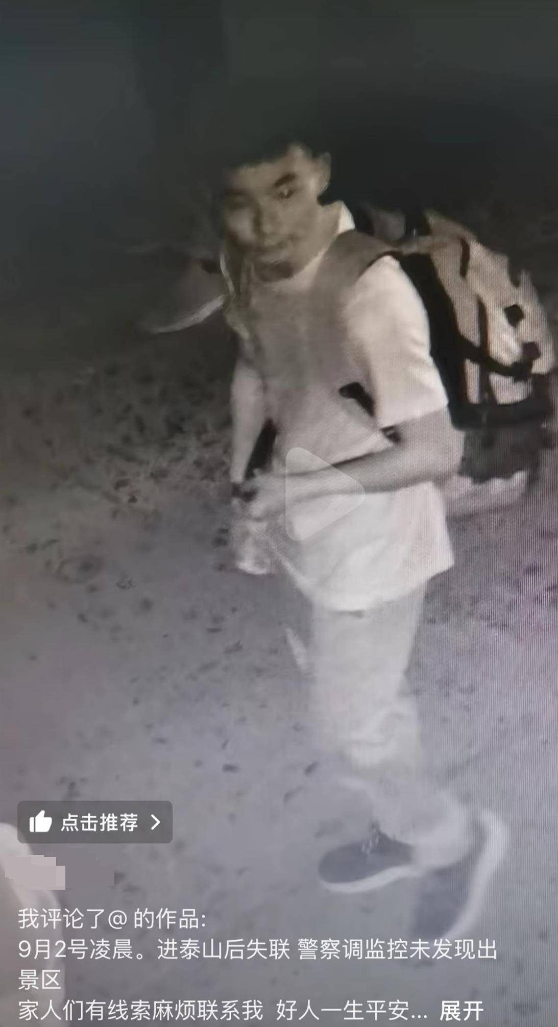 极目新闻此前报道,王女士向记者提供了两张监控图片,她了解到,一张是9月2日凌晨李小龙进入泰山景区上山的监控图片,另一张疑似是2日上午7时40分许李小龙下山的画面,这是李小龙最后一次出现在监控中,但这条路山下的出口既没有关于他的记录,也没有监控信息。