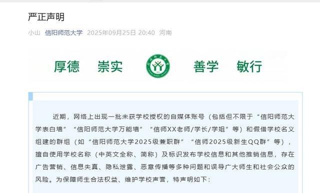 近日,信阳师范大学发布严正声明,具体内容如下——