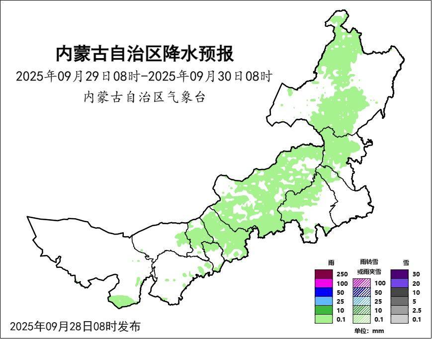 内蒙古西部偏南和偏东、中部偏南和偏东、东部偏西和偏北地区多云,有分散性小雨或阵雨;中西部偏北地区4、5级短时6级偏西风或西南风。