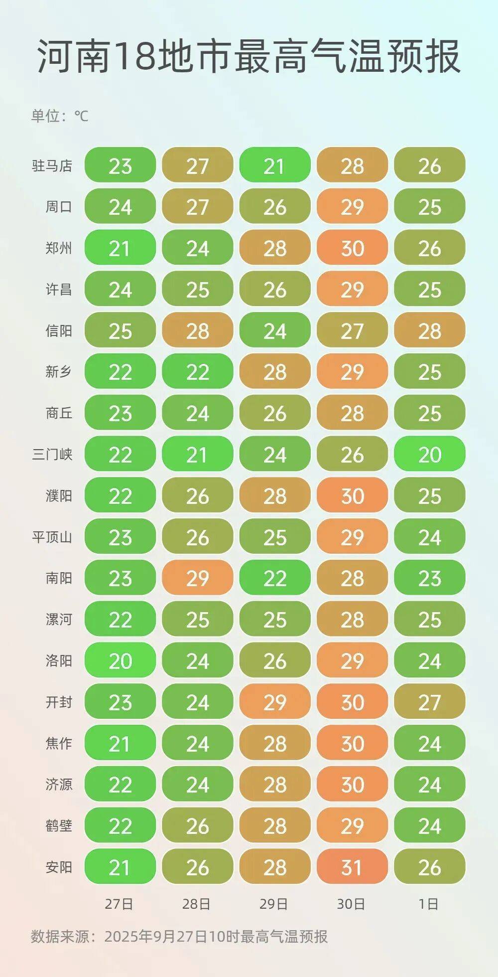 从今天起到下周二,全省大部最高气温将逐步回升至30℃上下,带来短暂暖意。但这股暖意更像是降温前的“序曲”,真正的转折点就在10月1日。
