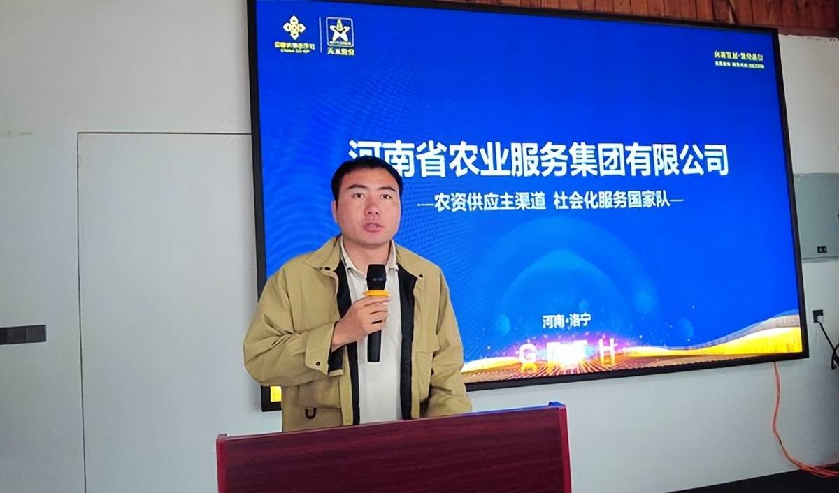 河南省农服集团推广经理崔世勇进一步介绍了集团在示范田建设、耕种防收全程托管及政策资源对接等方面的综合优势。