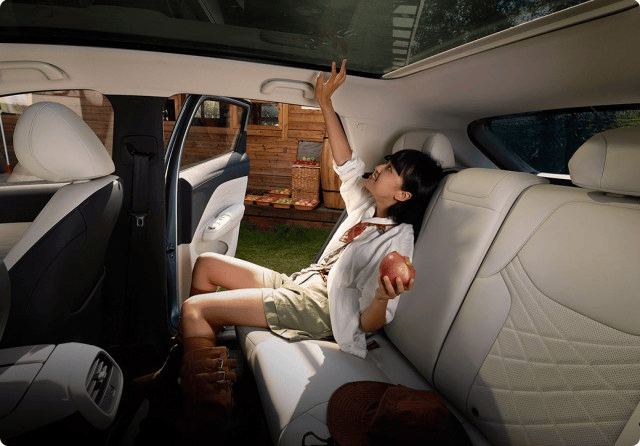 得益于2770mm的超长轴距,极狐T1的后排空间非常宽敞,腿部空间可达934mm,头部空间为981mm。前排座椅支持一键放平,可与后排无缝拼接成“大床”,满足户外“躺平自由”。后备厢容积在正常状态下为459L,后排座椅放倒后可扩展至1352L,全车还有32处储物空间,74L下沉式隐藏空间,满足多种用车场景需求。