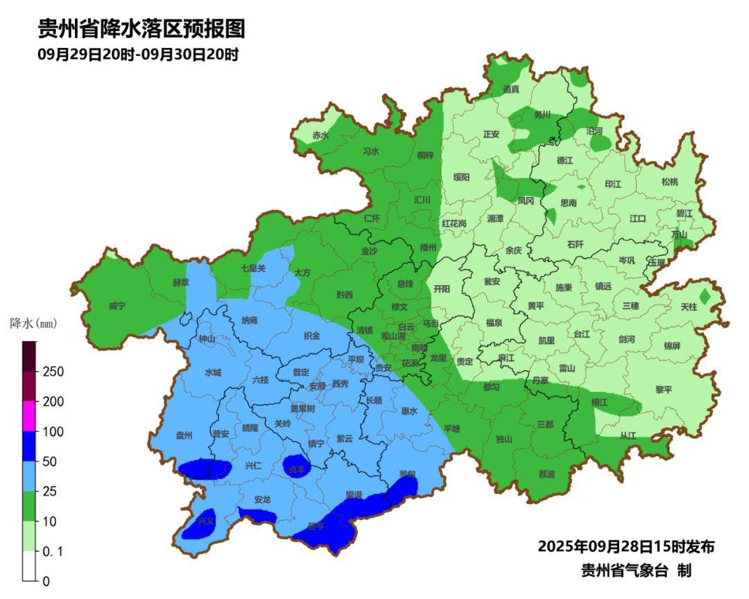 受台风“博罗依”外围云系影响,29日至30日白天,全省阴天间多云有阵雨或雷雨,毕节市中西部、安顺市、六盘水市、黔西南州、黔南州西部局地有中到大雨,其中六盘水市南部、黔西南州、黔南州西南部的部分乡镇有暴雨。