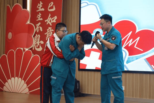 活动现场,来自南阳市第一人民医院急诊医学科主任首先通过通俗易懂的语言,配以图文并茂的课件,为同学们讲解了AED设备的正确使用方法,在实操环节,同学们在医护人员的指导下,同学们用模拟人亲身体验心肺复苏的全过程,练习胸外按压的位置、深度和频率;在海姆立克急救法实操环节,一名同学模拟患者呈现 “异物卡喉” 状态,在医护人员的指导下,从站姿调整、受力点定位,到握拳形成 “锁扣”、连续向上向内冲击,每一步操作都精准规范。