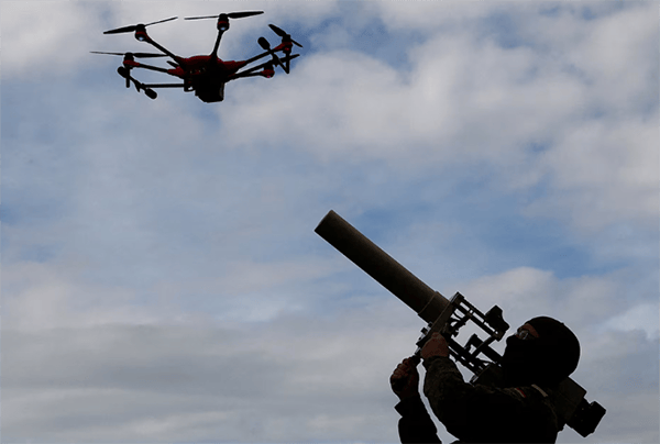 9月26日,德国武装部队士兵在国防演习中演示无人机干扰器。路透社