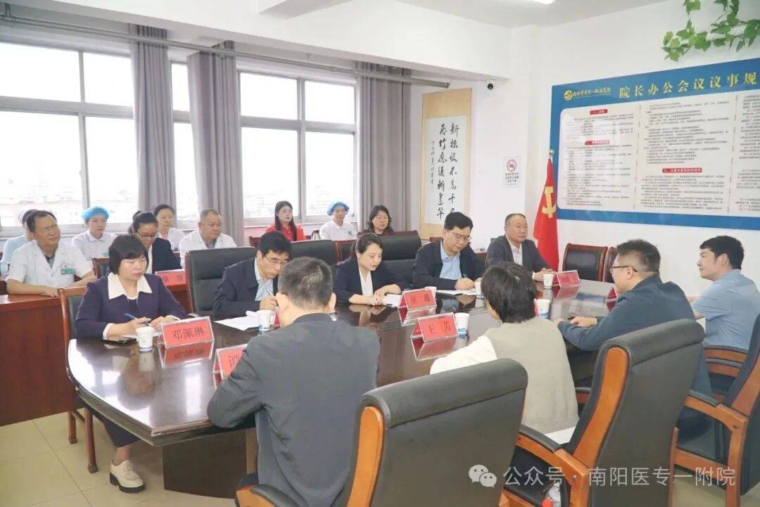 为持续提升疼痛专业诊疗水平,进一步规范医疗行为,根据河南省疼痛专业医疗质量控制中心统一部署,2025年9月27日,由郑州大学第二附属医院疼痛科主任、河南省疼痛专业质控中心副主任张君担任组长的省级专家组一行四人,莅临南阳医专一附院开展疼痛专业医疗质量控制现场调研指导。此次调研是针对南阳医专一附院作为河南省疼痛哨点医院开展的一次专项工作。 南阳市卫生健康体育委员会医政医管科科长张鑫出席会议,医院领导班子成员、疼痛科及相关职能科室负责人陪同调研。