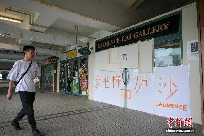 9月23日,超强台风“桦加沙”逼近香港,天文台于14时20分改发八号西北烈风或暴风信号(即“八号风球”),香港中环有商户做好防风措施。 中新社记者 陈永诺 摄
