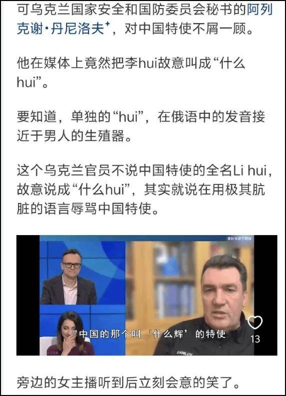 乌克兰高官如此敌视、仇视中国,又一再的碰瓷、诬蔑中国,却又双叒叕能公然要求中国的帮助,还要求中国阻止俄罗斯,这不就是典型的几无安嘛!
