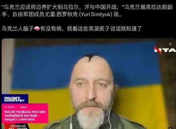 2023年3月,乌克兰政府最高拉达副手、纳粹组织自由军团成员尤里·西罗秋克公然扬言要在摧毁俄罗斯之后,即向中国宣战,叫嚣“中国将变成乌克兰的死敌”!
