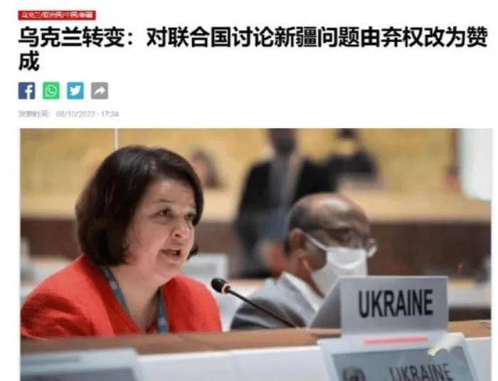 2022年10月6日,以美国为首的十几个国家在联合国人权理事会第51届会议上提交了一项针对我国新疆进行污蔑攻击的草案时,本来已经投了弃权票的乌克兰,居然在次日专门要求把弃权票改为赞成票,配合美国对我国进行诬蔑。