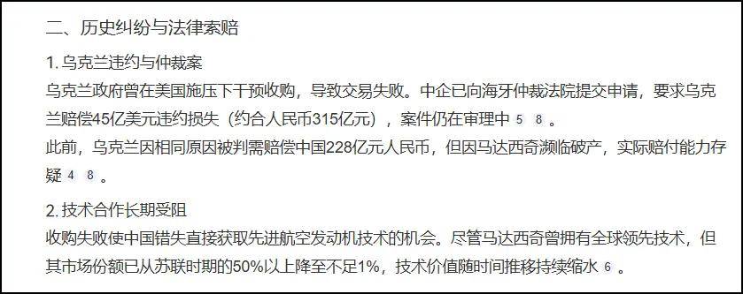最有名的当数乌克兰为了向美国献上投名状,不惜违约破坏我国企业收购马达西奇一事了。我国企业因此损失45亿美元(约合人民币315亿元),可乌克兰一直拒绝赔偿。