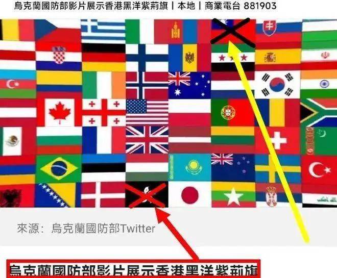 2022年12月,乌克兰国防部在其官方网站上展示所谓的支持它的52个国家的国旗时,公然把对岸的伪旗与黑化的我香港特区区旗列入,公然的分裂中国、抹黑中国。