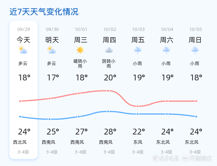 今天是9月29日,农历八月初八,烟台市迎来多云天气。今日气温适中,最高气温24℃,最低气温18℃,北风2级,空气湿度为87%,PM2.5指数为50,空气质量良好。全市各区天气情况基本一致,以多云为主,风力不大,适合市民户外活动。明天烟台市将继续保持多云天气,但气温略有上升,最高气温可达25℃,最低气温17℃。风向转为西南风,风力仍为3-4级。与今日相比,明天的天气状况总体平稳,市民可放心安排出行计划。未来三天,烟台市天气将呈现多变趋势。预计周三(10月1日)天气晴转小雨,气温27℃至18℃;周四(10月2日)阴转小雨,气温28℃至20℃;周五(10月3日)小雨,气温22℃至19℃。在此期间,最高气温将达到27℃,最低气温17℃。市民需注意携带雨具,及时关注天气变化,做好防雨准备。温馨提示