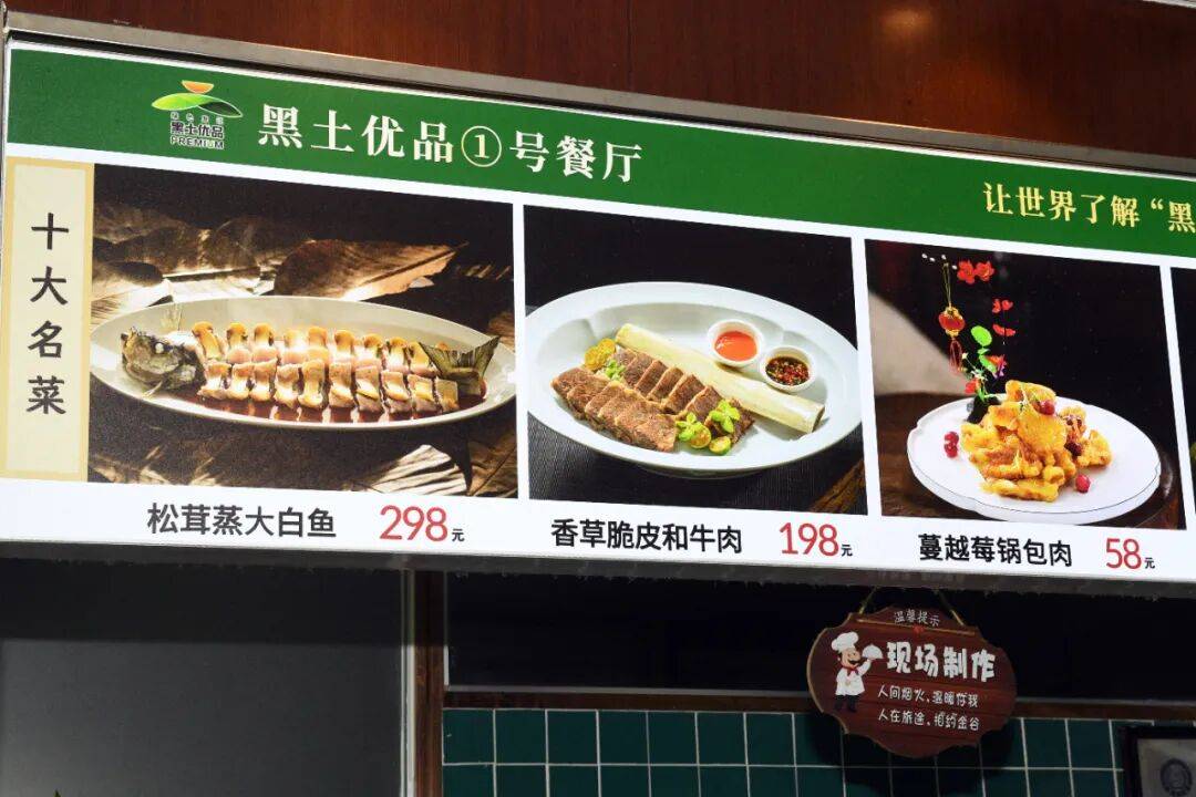 金谷大厦"黑土优品①号餐厅"深植文化基因,以特色餐饮为载体激活黑土地价值。"我们通过比赛选出的十大名菜皆烙刻'黑土印记'——佳木斯蔓越莓入味的创意锅包肉、五常大米蒸煮的阳光香饭,每道菜都是黑土地风味的生动诠释。"餐饮部经理郭春波介绍说,顾客对黑土产品非常信赖,自2024年7月在网络推出优惠套餐以来,截至目前已实现销量突破8000单。“在这里吃的不仅是特产产品,更是一段黑土故事。”
