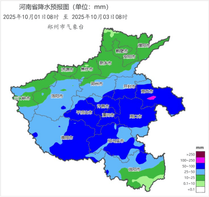 图1 2025年10月1日08时至3日08时河南省降水预报