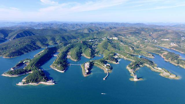 随着库区水位的攀升,丹江口水库库区自然景观层次更加丰富,南水北调中线工程渠首淅川县再现“上下天光,一碧万顷”的壮丽景致。碧波万顷的湖面与蓝天白云交相辉映,起伏的丘陵被湖水环绕,形成众多半岛与湖湾,库区水域面积扩大,水质清澈见底,偶尔可见水鸟成群掠过湖面,山水相依的景色吸引不少游客前来观光拍照,为当地文旅发展注入强劲动力。