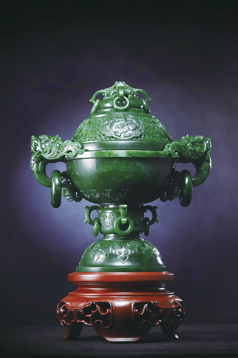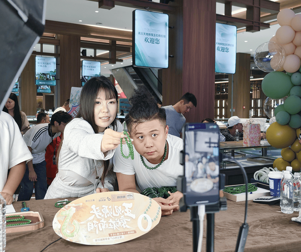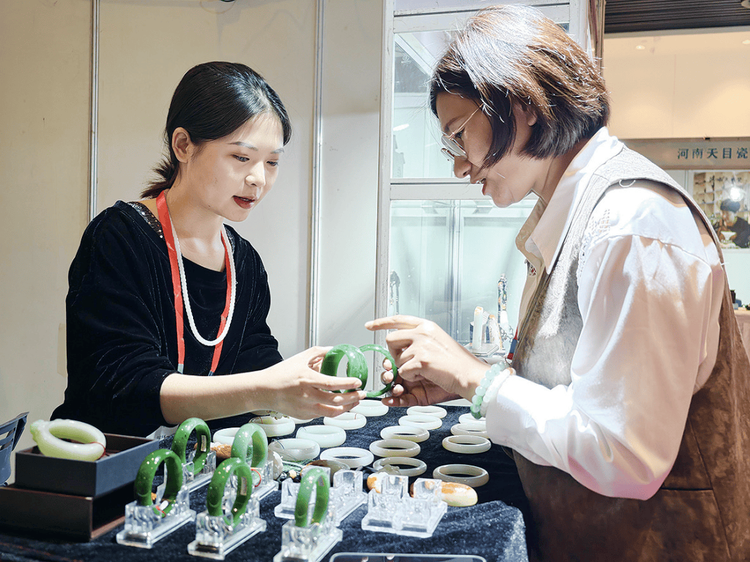 步入展厅,浓郁的东方美学韵味扑面而来。温润莹白的和田玉籽料,触手细腻如羊脂,尽显玉石本真的柔润质感;色泽瑰丽的翡翠摆件,在专业灯光的映衬下,流光溢彩间流转着灵动气韵,每一处光泽都似在诉说玉石的千年故事。值得一提的是,所有展品均由国家级玉雕大师与新锐匠人联袂创作——他们既坚守“因材施艺”的传统精髓,依据玉石的纹理、色泽、形态量身设计,让天然之美与工艺巧思无缝融合;又突破传统边界,创新性融入现代设计美学,或以简约线条重构经典造型,或以潮流元素激活文化内涵,赋予传统玉雕更具当代审美的时尚表达。这般匠心之作,不仅为海内外游客提供了近距离触摸美玉魅力、沉浸式感受玉雕文化的机会,更引得众多观众驻足凝视、细细品鉴,不少人举起手机拍照留念。