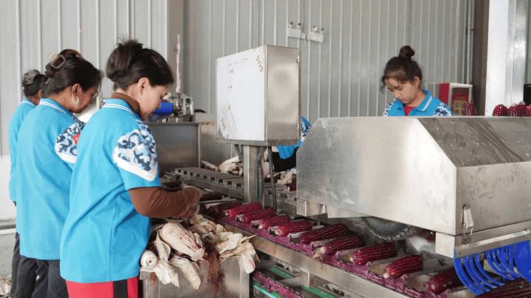 近日,在叶城县宗朗乡九麟农业发展有限公司,生产线上一派繁忙景象。上一秒还长在田里的玉米,只需等待10分钟的运输时间,就被迅速送入自动化流水线。在剥皮、清洗、筛选、真空包装、高温蒸煮等一道道精密工序后,新鲜的玉米在短短一小时内便完成了从田间到成品的华丽蜕变。这种高效加工模式不仅最大程度锁住了玉米的鲜甜与营养,更以地道的工艺和真材实料的品质赢得了市场的青睐,产品销量节节攀升。