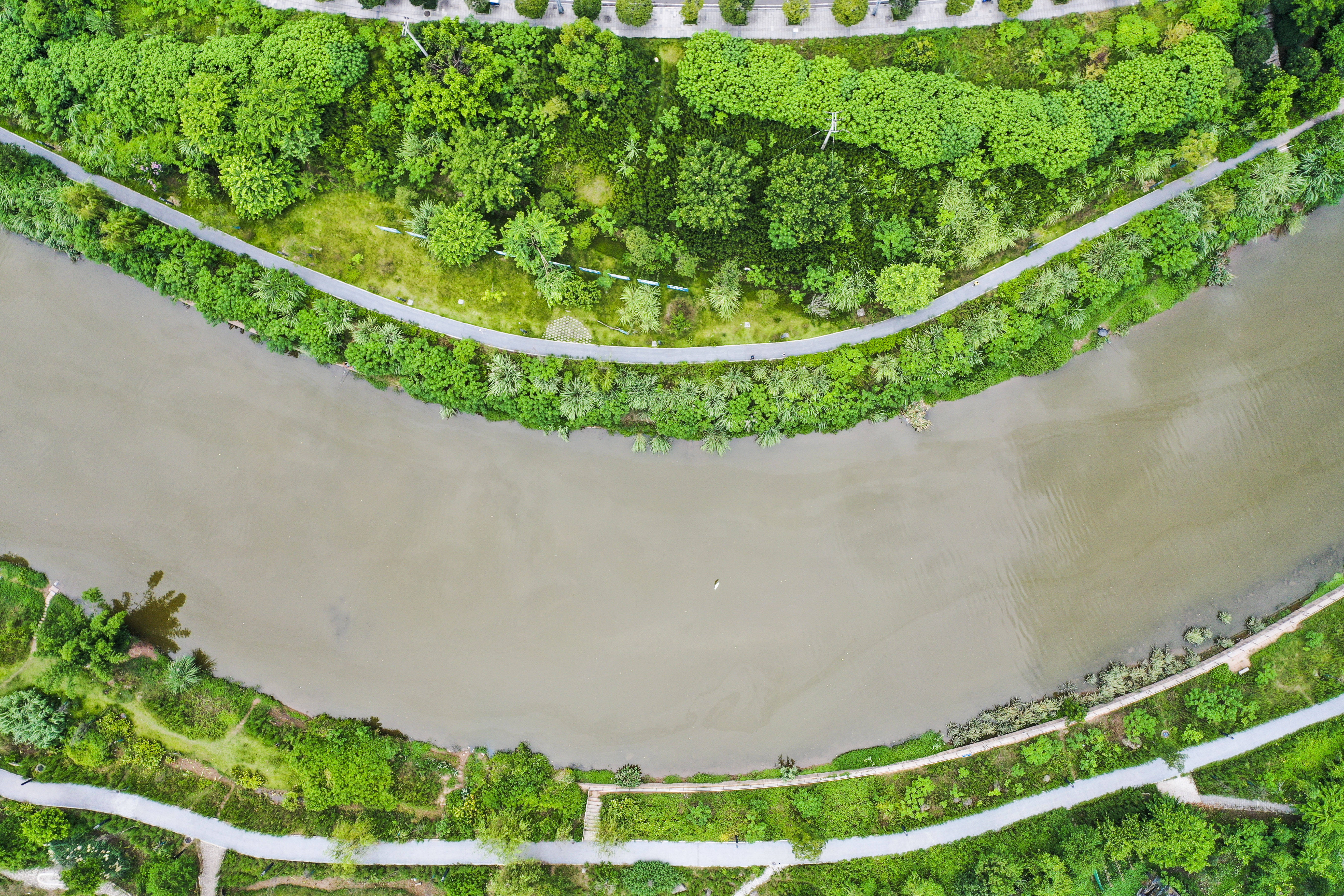 重庆市巴南区的花溪河经过生态修复后,成为一条水清岸绿的生态廊道。新华社记者王全超 摄
