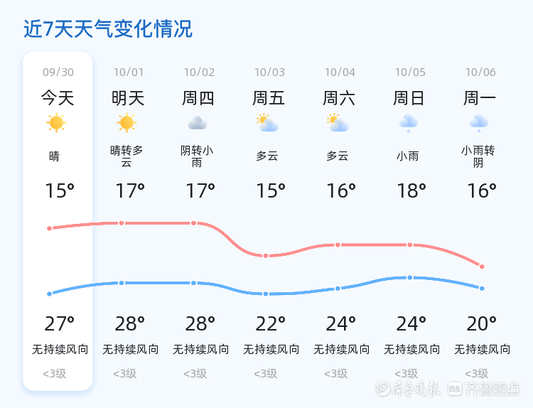 未来三天,德州的天气将呈现一定的变化趋势。周四(10月2日)天气预计为阴转小雨,气温在17℃至28℃之间;周五(10月3日)和周六(10月4日)将以多云为主,气温略有下降,最低气温在15℃至16℃之间。周四的降雨可能会对市民的出行造成一定影响,建议市民提前做好防雨准备,出行时注意交通安全未来三天德州天气变化较为明显,市民需根据天气情况及时增减衣物,尤其是周四的降雨天气,建议携带雨具,避免因天气变化影响日常生活和工作。