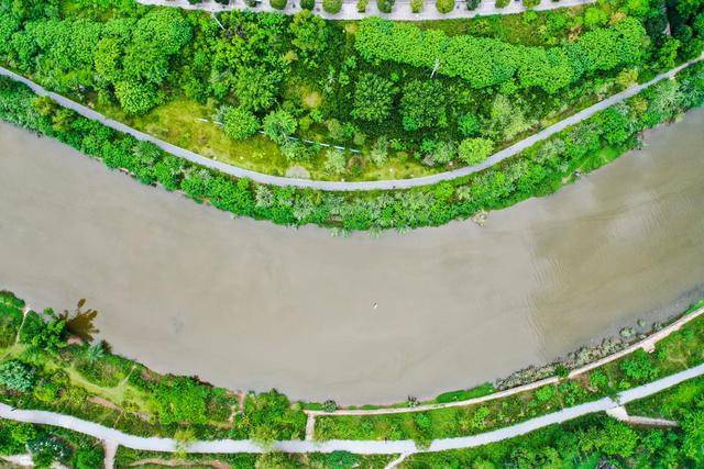 重庆市巴南区的花溪河经过生态修复后,成为一条水清岸绿的生态廊道。新华社记者王全超 摄