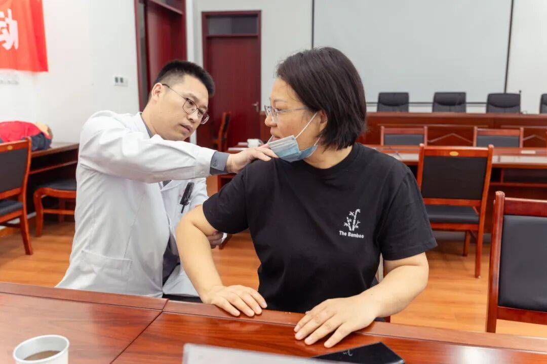 当天下午3时,义诊活动准时开始,现场已有序排起长队。针对教师职业常见的颈肩腰腿痛、手腕部劳损、慢性疲劳等问题,医疗团队提供了细致专业的健康咨询和诊疗服务。医护人员耐心地为每一位老师进行身体检查,详细询问身体状况、既往病史及日常工作生活习惯,并据此提供个性化、合理化的诊疗建议与健康指导,反复叮嘱老师们在日常工作中需注意劳逸结合,加强针对性锻炼,保持良好生活习惯。