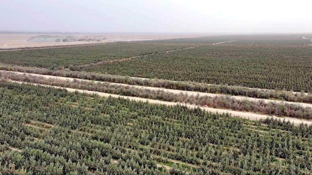 在泽普县特色现代富民产业园,万亩戈壁果园里,早熟苹果“瑞雪”刚下枝头,中熟品种“秦脆”又挂满树梢,果农阿卜杜热合曼·麦麦提正忙着将刚采摘的苹果装箱,“今年果园用上了水肥一体化技术,果子甜度比去年高,每公斤能多卖一些钱。”