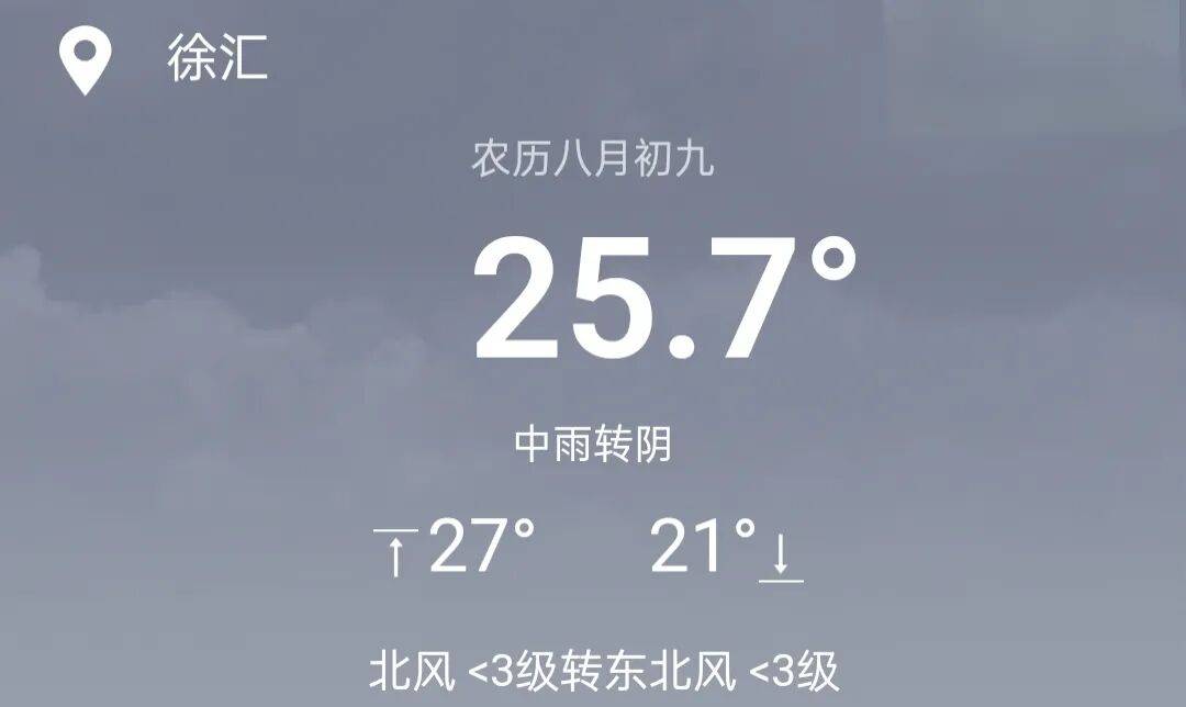今天(9月30日)阴有时有阵雨或雷雨,局部地区雨量可达大雨到暴雨,上班上学带好雨具,下雨途中注意道路交通安全。今天傍晚前后转阴到多云,偏北风3~4级,今天下午起4~5级,沿江沿海地区阵风有6级,雷雨时阵风7~9级,风向偏北。最高气温27℃,最低气温24℃。相对湿度70%~90%。