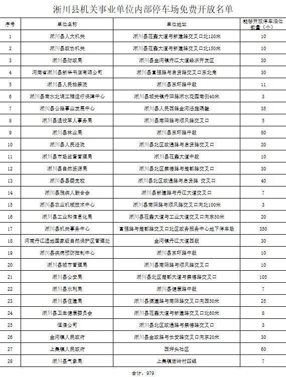 市直单位和各县(市、区)公共机构内部停车场开放清单如下:
