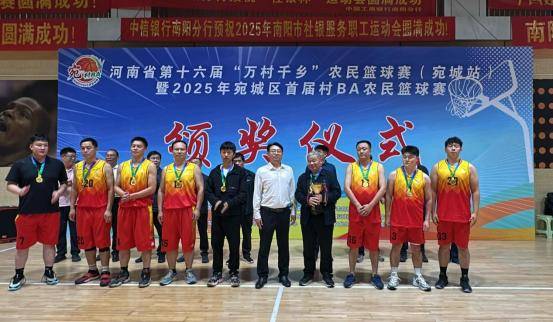 河南省第十六届“万村千乡”农民篮球赛(宛城站)暨2025年宛城区首届村BA农民篮球赛近日在南阳市第一体育健身中心激情收官,为期五天的乡村篮球赛事点燃了宛城的体育激情。宛城区委常委、宣传部部长、副区长陈梦尘,南阳市体育事业发展中心党总支书记、主任王爽,宛城区政府二级调研员张明团为获奖球队及队员颁奖。