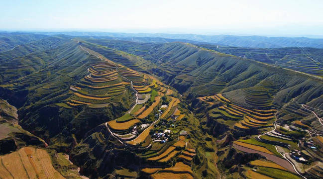 无人机俯拍韦营乡梯田。榆中县委宣传部供图