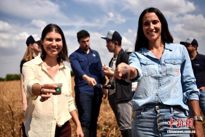 当地时间9月19日,巴西圣保罗州皮拉苏农加市,埃斯坦西亚农场农场主娜塔莉亚(左)、艾琳(右)两姐妹展示改良土壤。中新社记者 林春茵 摄