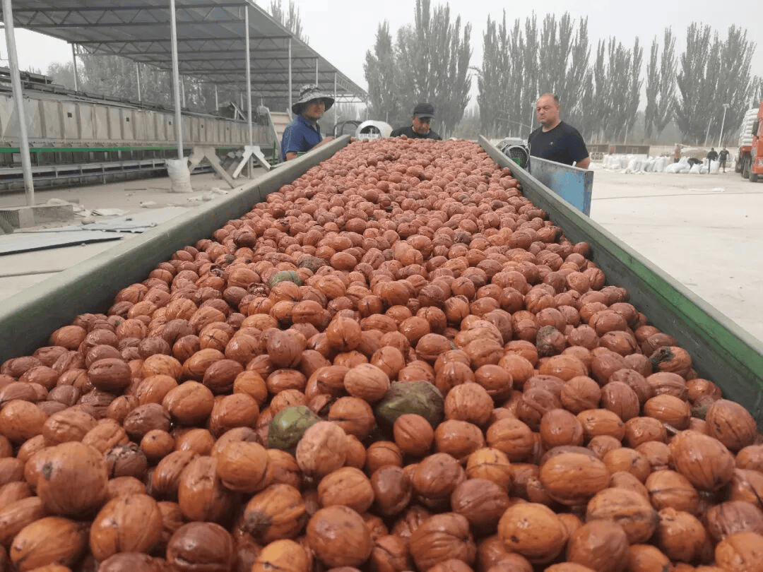 作为传统优势产业,核桃和红枣的“老树新枝”同样焕发活力。在赛力乡的新疆银光国际贸易有限公司,工人们抢抓核桃上市黄金时期,开足马力,开展核桃收购与加工工作,全力拓展核桃出口业务。新疆银光国际贸易有限公司厂长斯依提买买提莫合森·夏米力说:“我们刚刚和俄罗斯那边签了300吨核桃、54吨核桃仁的订单,这批订单现在正在陆续发货。”