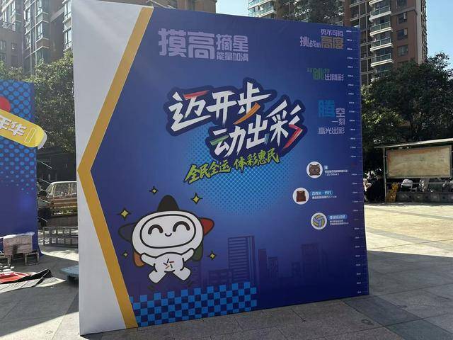在汉飞金沙小区中心广场上,以运动蓝为主色调的活动展区,让过往居民仿佛置身于蓝色的海洋之中。活动现场设置了运动体验区、科普知识区、主舞台等区域。