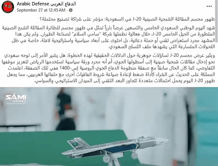此后,沙特网友多次公开询问“歼-20、歼-35何时能出口沙特”,而此次国庆视频中的歼-20模型,更像是沙特对中国先进装备需求的“公开喊话”。