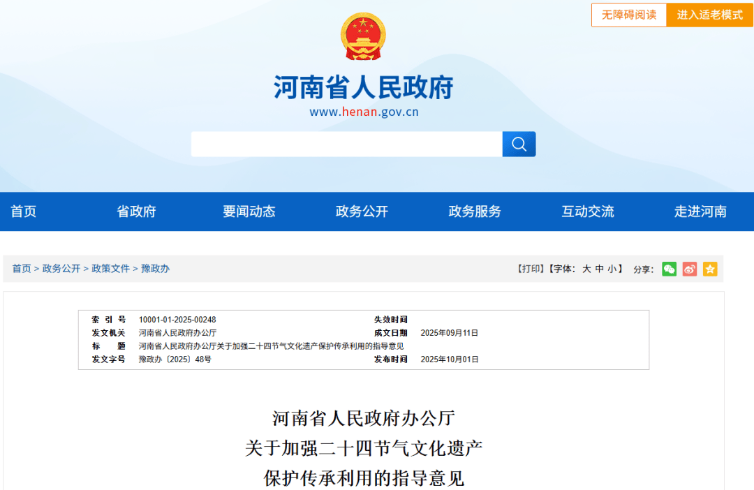 为加强二十四节气文化遗产保护传承利用,深化中华文明交流互鉴,推动节气文化繁荣兴盛,加快建设文旅强省,经省政府同意,现提出以下指导意见,请认真贯彻落实。