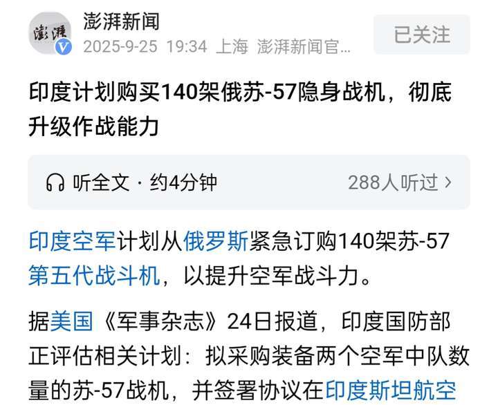 即便印度最终凑齐114架“阵风”、140架苏-57与97架“光辉”,这些来自不同国家、不同体系的战机,也难以形成有效协同——“阵风”的北约制式数据链与苏-57的俄制系统很难兼容,最终很可能沦为“各自为战”的“装备拼盘”。